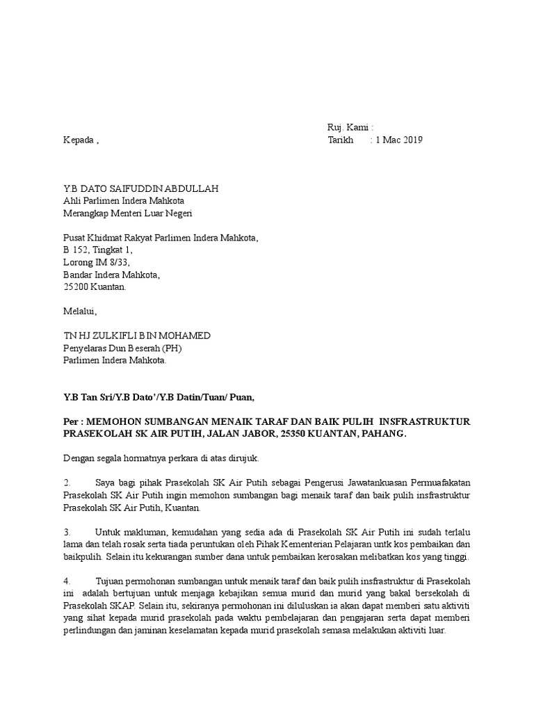 Surat Mohon Sumbangan Prasekolah Pdf